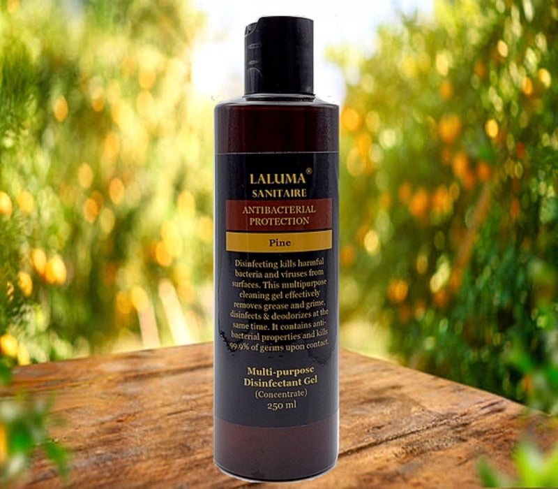Laluma® Sanitaire Multipurpose Disinfectant Gel Concentrate is a powerful cleaning viscous solution made with pine essential oil blend. It effectively removes grease and grime, disinfects and deodorizes at the same time. It contains antibacterial properties and kills 99.9% of germs upon contact. Use it to clean bathrooms, toilets, sinks, wall tiles, tiled flooring, drains and more. Good for removing stubborn algae too.